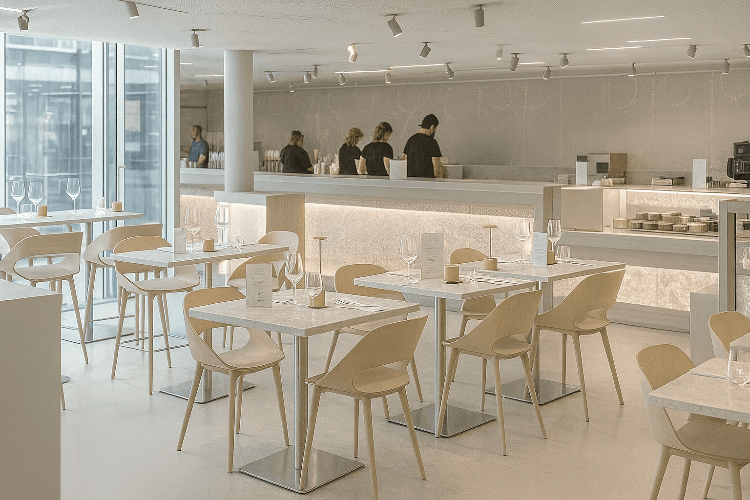 Implanté dans un étage où se mêlent food, technologie et mode, ce corner assume pleinement sa présence singulière : une cuisine ouverte qui combine usages, design et innovation au sein d’un environnement éclectique.